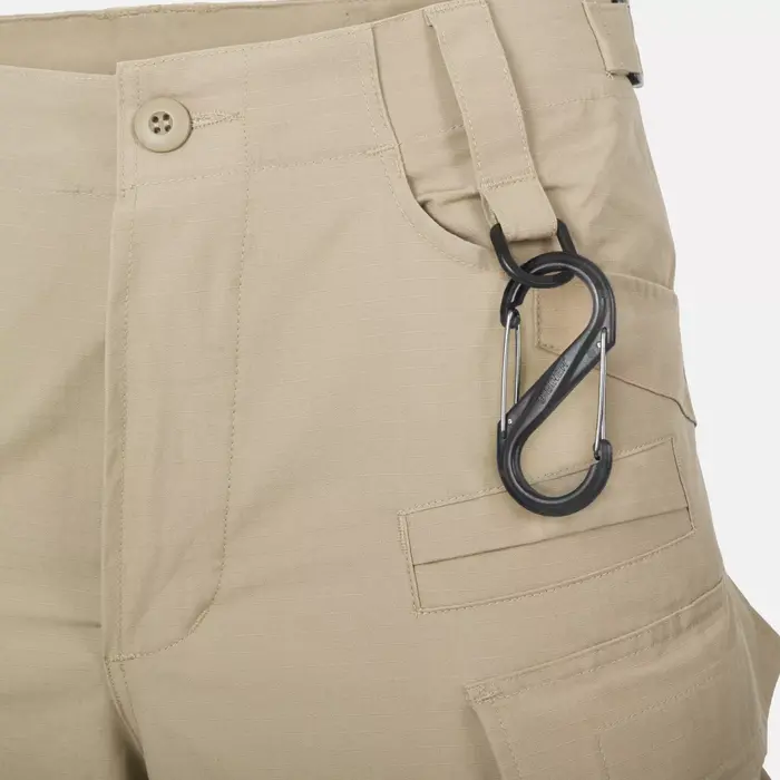 Военные брюки SFU Next имеют девять карманов. Два классических передних кармана, расположенных на бедрах, усилены для снижения риска повреждения от зажимов для ножей или фонариков. Боковые набедренные грузовые карманы, застегивающиеся на липучки и пуговицы, оснащены внутренним органайзером. Это позволяет пользователю оптимально распределить мелкие предметы снаряжения и закрепить их, чтобы они не смещались во время активности. Боевые брюки также имеют дополнительный нагрудный карман, застегивающийся на крючок. петля, в которую легко поместится персональная аптечка первой помощи.