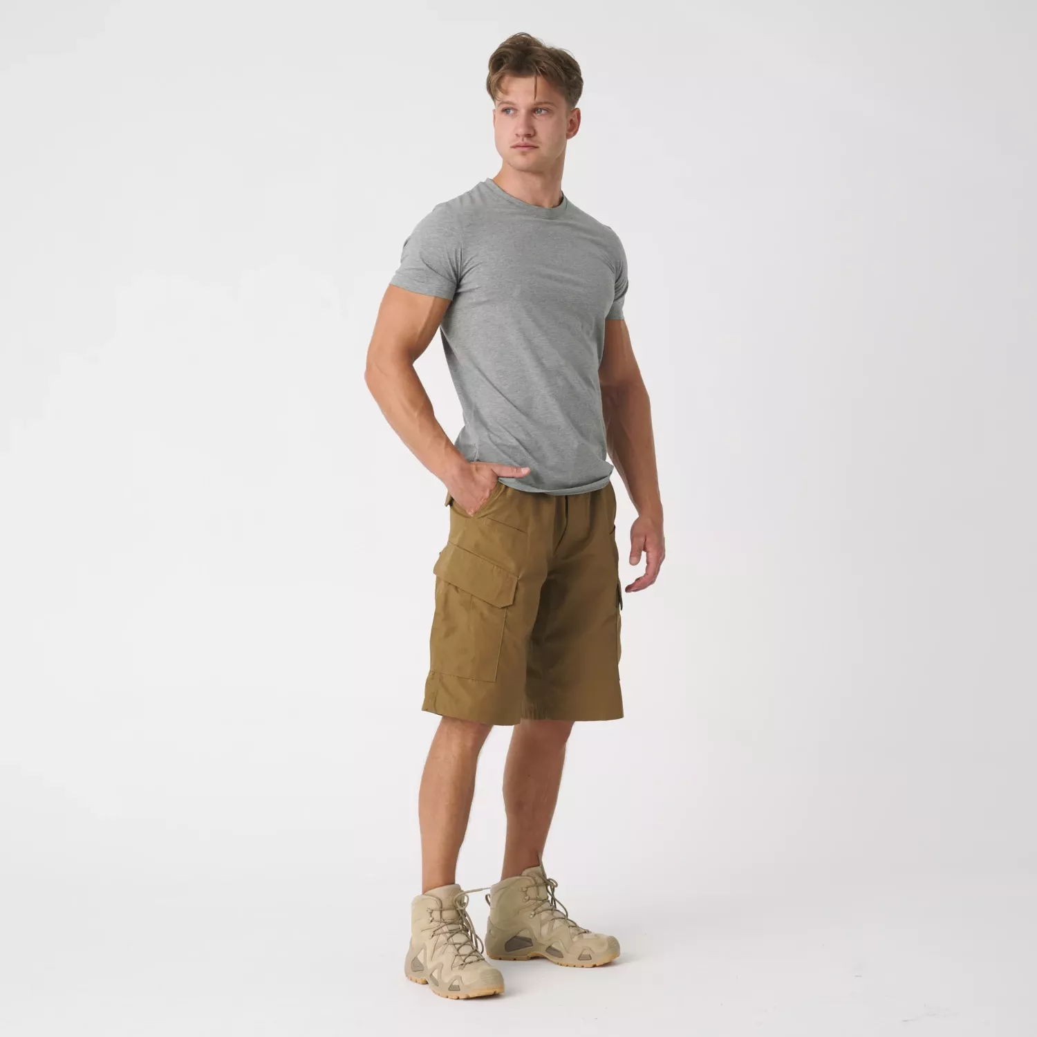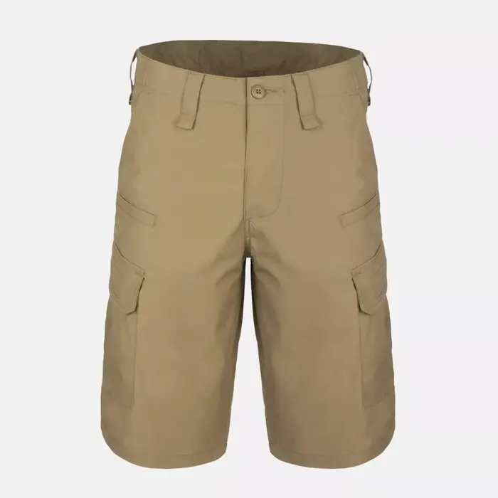Восемь практичных карманов в этих военных шортах позволяют удобно носить с собой повседневное снаряжение. Два классических набедренных кармана вмещают нож или фонарик. Два небольших передних кармана предназначены для мелких предметов снаряжения, таких как смартфон. Два набедренных кармана с застежкой на липучке, пуговицах и шнурке могут служить подсумками для пустых магазинов. Дополнительные петли для карабинов пришиты под передними петлями для ремня.