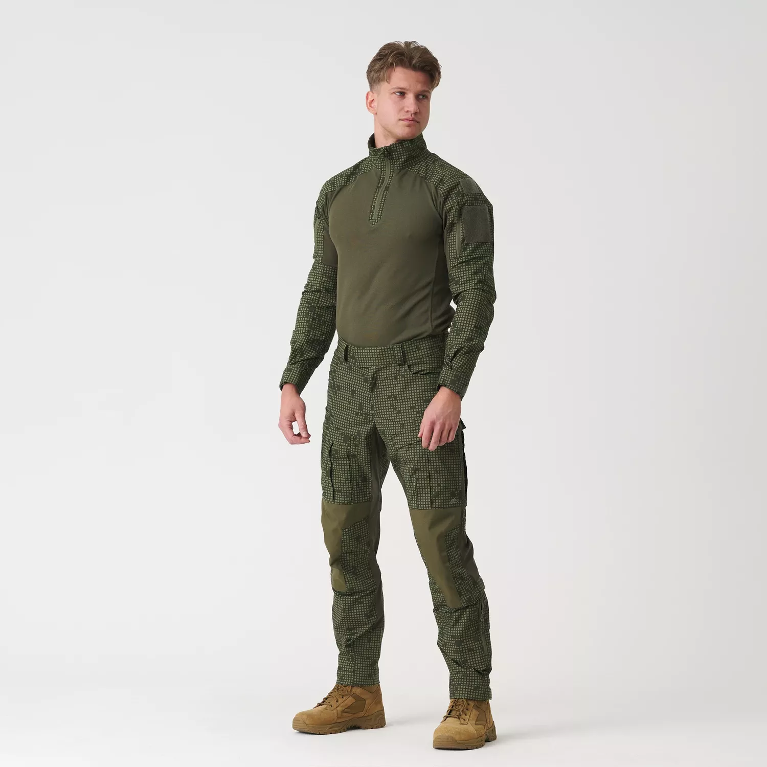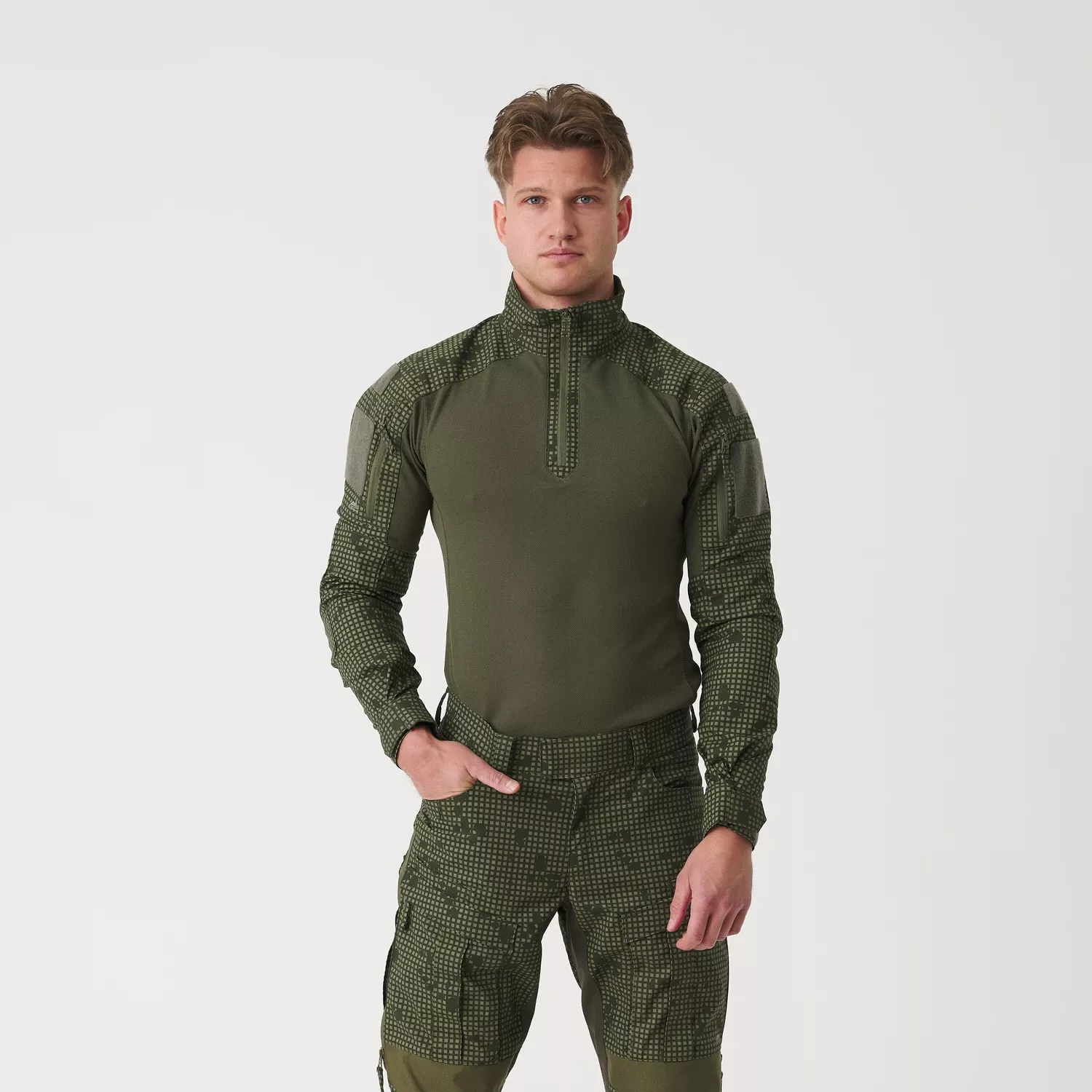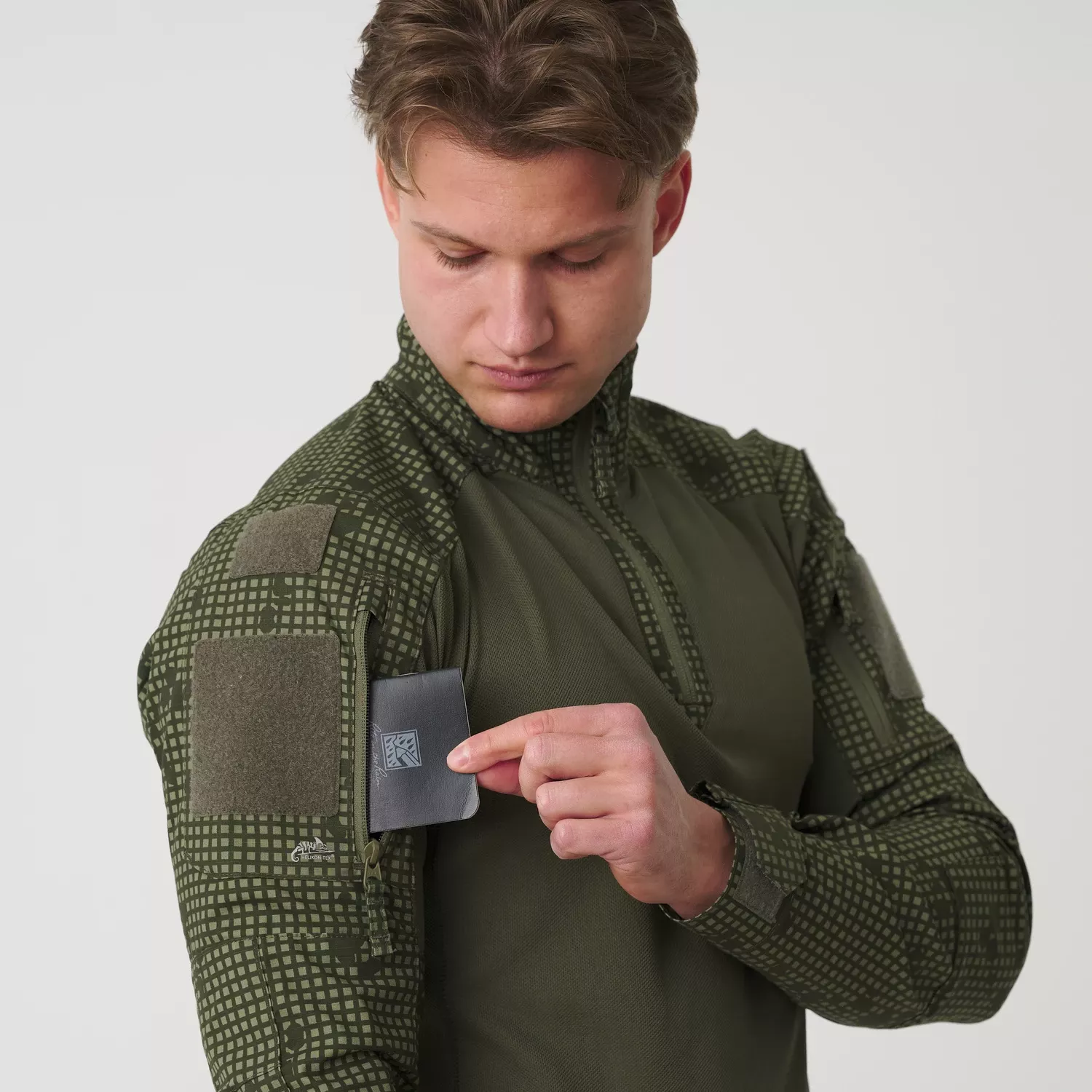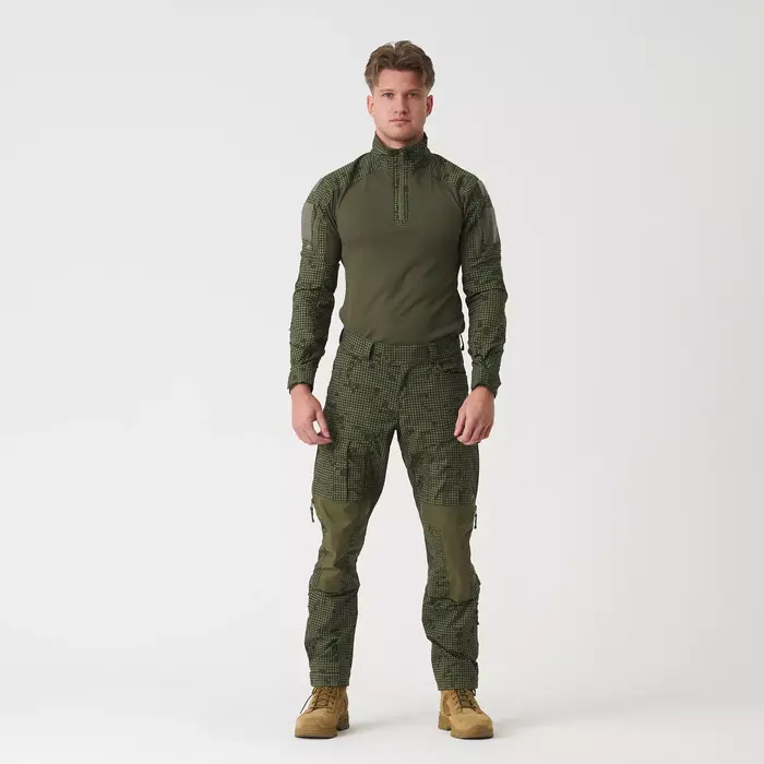Практичные карманы на молнии YKK расположены на плечах, что позволяет безопасно хранить мелкие предметы, такие как GPS-навигаторы или карты.Двойные застежки-липучки на плечах позволяют легко персонализировать рубашку, добавив эмблемы или нашивки, такие как национальный флаг или знаки различия подразделения. Высокий воротник на молнии обеспечивает дополнительную защиту, а регулируемые манжеты на липучках позволяют идеально подогнать рубашку по фигуре. Кроме того,усиления вокруг локтей обеспечивают защиту от истирания.