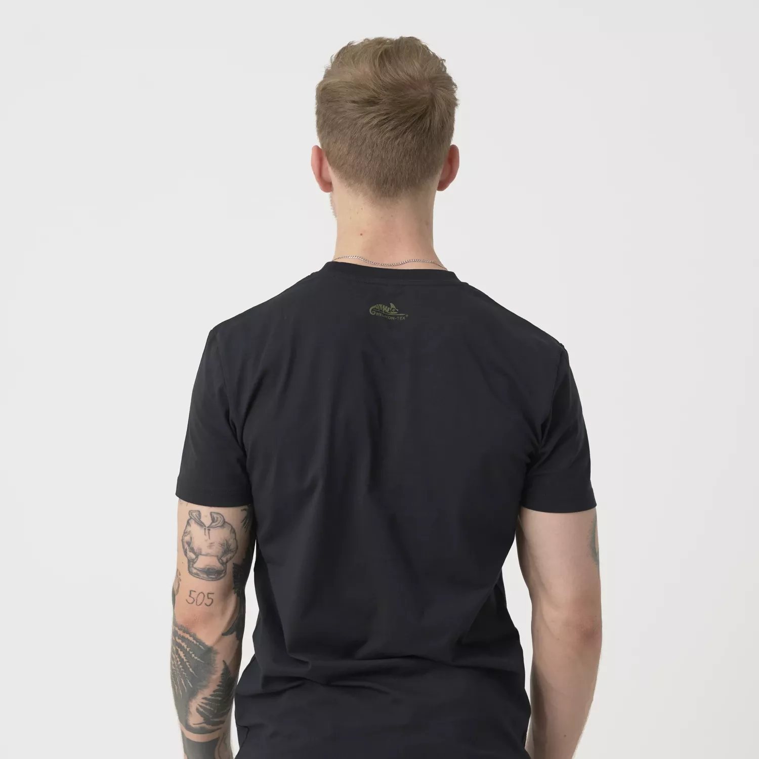 Классическая хлопковая футболка стандартного кроя. Форма в виде винтовки и родезийский камуфляж напоминают о военных корнях нашей компании. Характерная форма футболок развилась в начале 20-го века из прежнего нижнего белья (известного как комбинезон). После Второй мировой войны хлопковые футболки в форме буквы Т стали очень популярны, отчасти благодаря Марлону Брандо и Джеймсу Дину, которые носили их на экране.