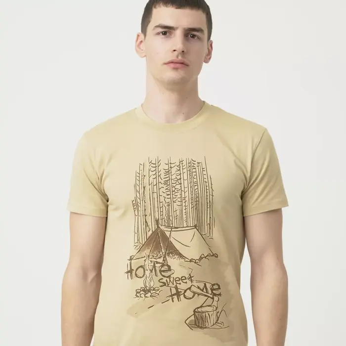 Футболка с принтом Home Sweet Home — настоящий подарок для тех, кто любит отдыхать на природе. Яркий принт изображает палатку, костер и часть леса, а также отличается высокой износостойкостью, сохраняя свой внешний вид даже после многих стирок. Эта футболка с графическим принтом изготовлена из дышащего и мягкого на ощупь хлопка плотностью 165 г/м². Эта куртка имеет классический, культовый крой с короткими рукавами, что делает ее свободной и удобной, обеспечивая свободу движений.