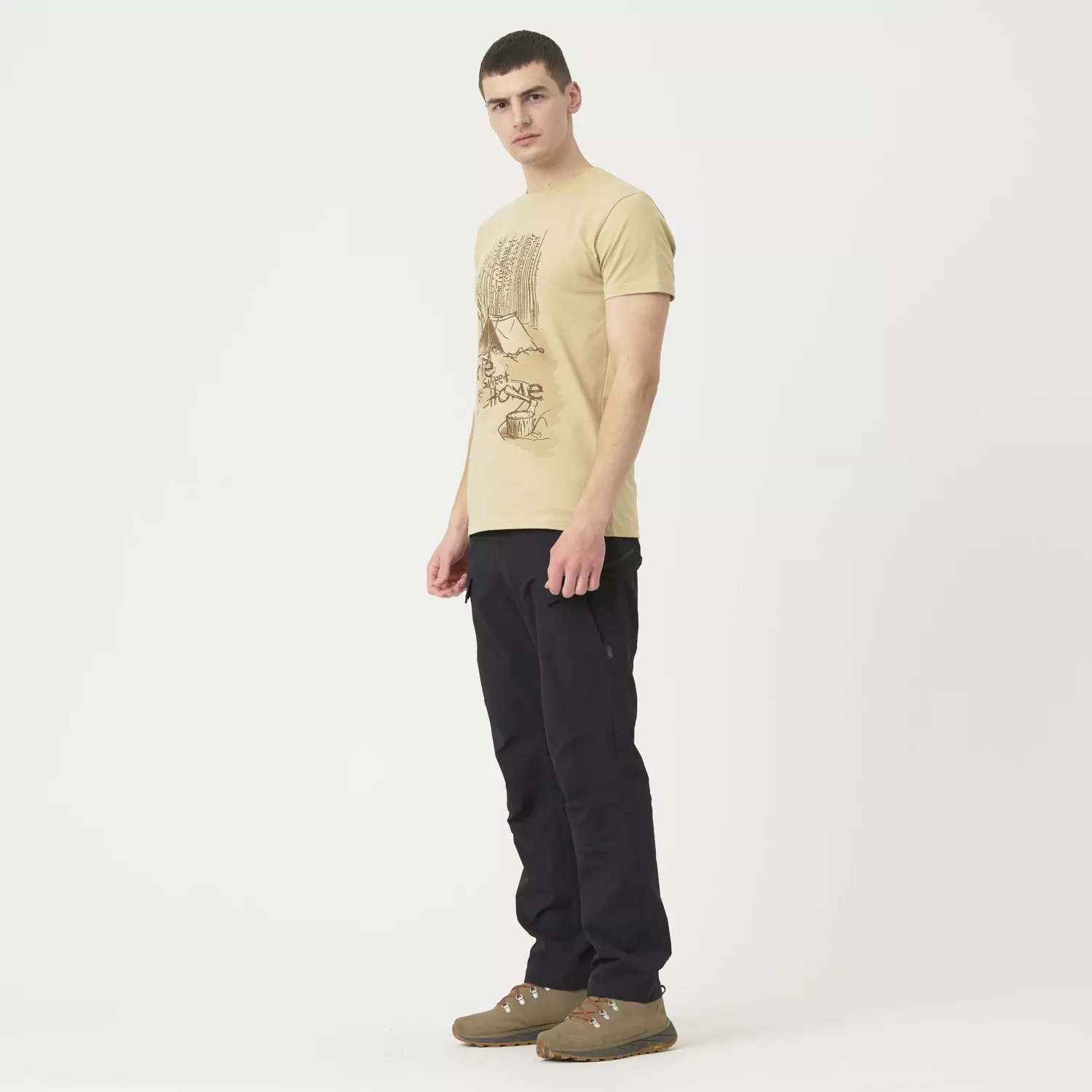 Футболка с принтом Home Sweet Home — настоящий подарок для тех, кто любит отдыхать на природе. Яркий принт изображает палатку, костер и часть леса, а также отличается высокой износостойкостью, сохраняя свой внешний вид даже после многих стирок. Эта футболка с графическим принтом изготовлена из дышащего и мягкого на ощупь хлопка плотностью 165 г/м². Эта куртка имеет классический, культовый крой с короткими рукавами, что делает ее свободной и удобной, обеспечивая свободу движений.