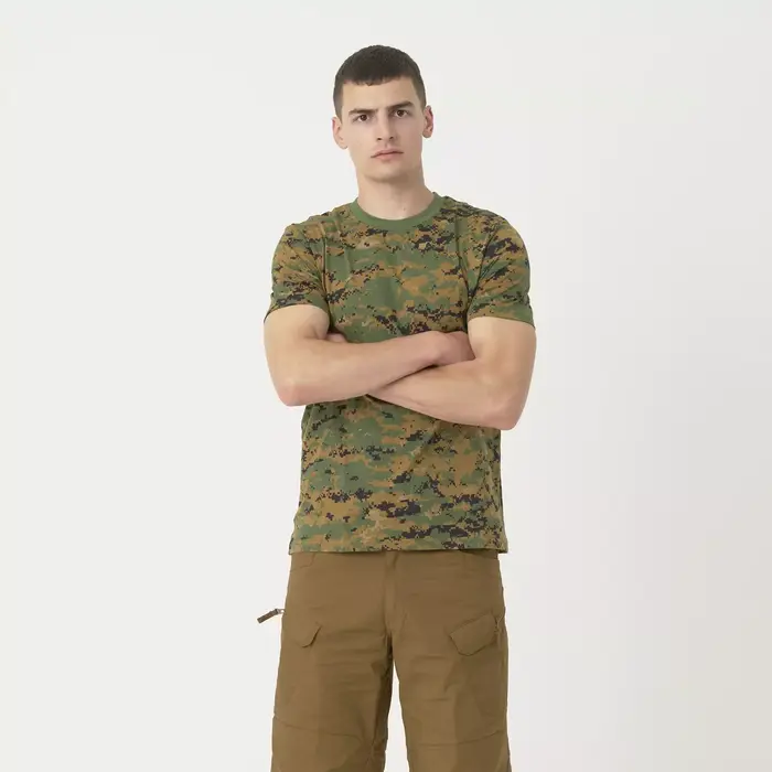 Классическая хлопковая футболка свободного кроя. Характерная форма футболок развилась в начале 20-го века из предшествующего нижнего белья (известного как комбинезон). После Второй мировой войны хлопковые футболки в форме буквы Т стали очень популярны, отчасти благодаря Марлону Брандо и Джеймсу Дину, которые носили их на экране. В нашем ассортименте представлены футболки не только различных цветов, но и с камуфляжным рисунком, так что вы можете выбрать: военную рубашку или так называемую «скромную».