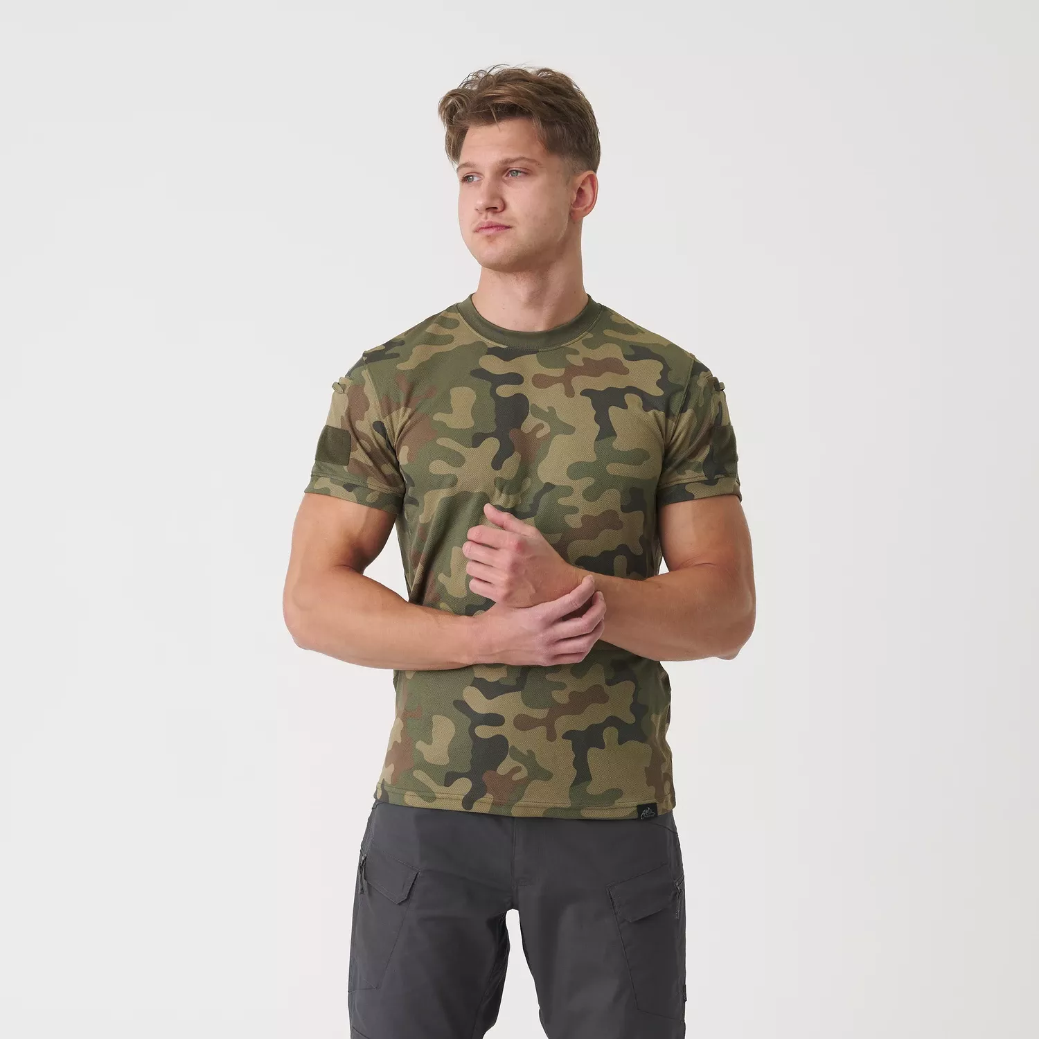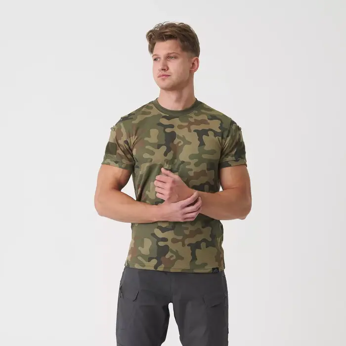 Тактическая футболка — это практичный вариант с коротким рукавом. Футболка изготовлена из быстросохнущей и приятной для кожи ткани. Материал также отводит влагу — даже при сильном потоотделении. Она хорошо подходит как для активного отдыха на природе, так и для тренировок в помещении. Тактическая футболка сочетает в себе универсальный стиль и функциональность. Благодаря двум карманам на плечах и петлям вы можете носить с собой мелкие вещи, например, очки. Чтобы персонализировать эту термоактивную футболку, прикрепите нашивку к крючку & петлевая панель.