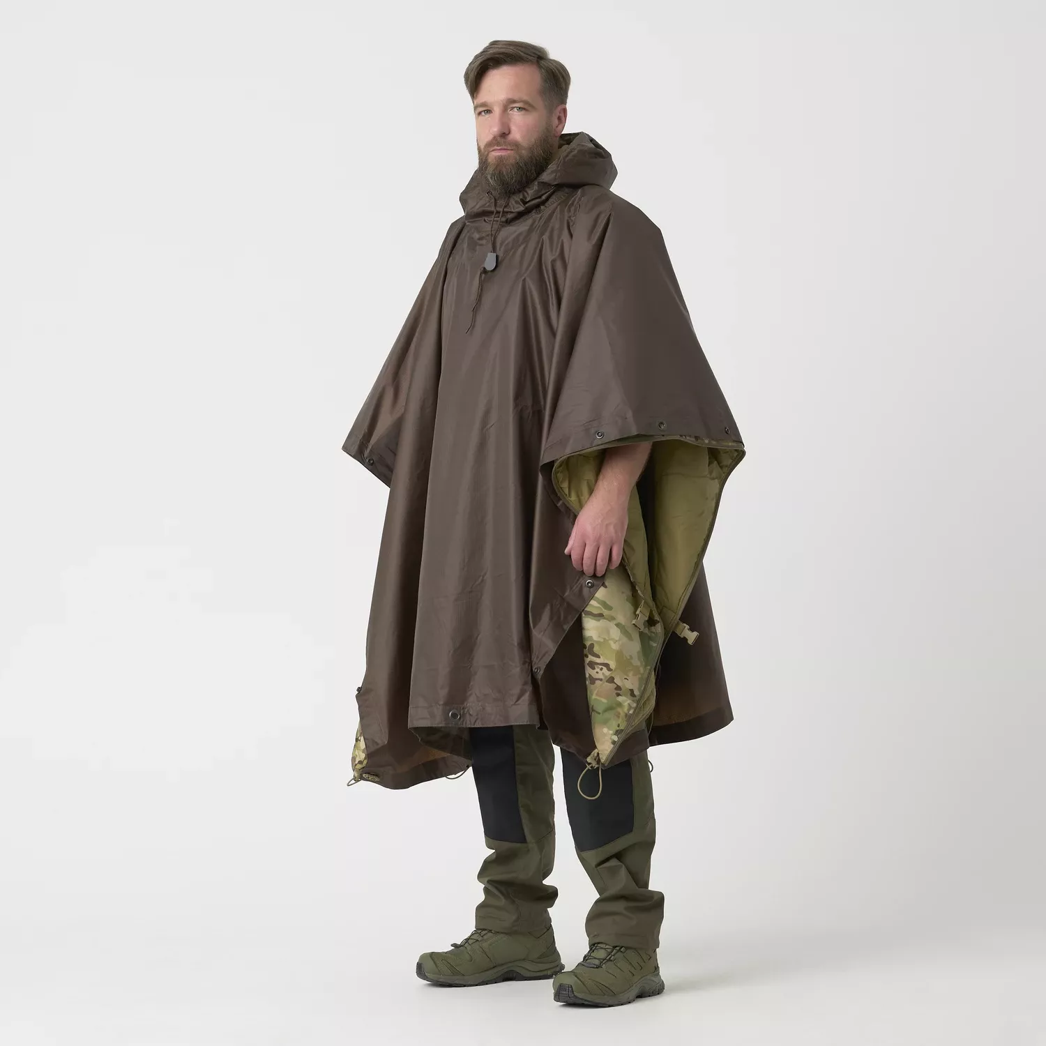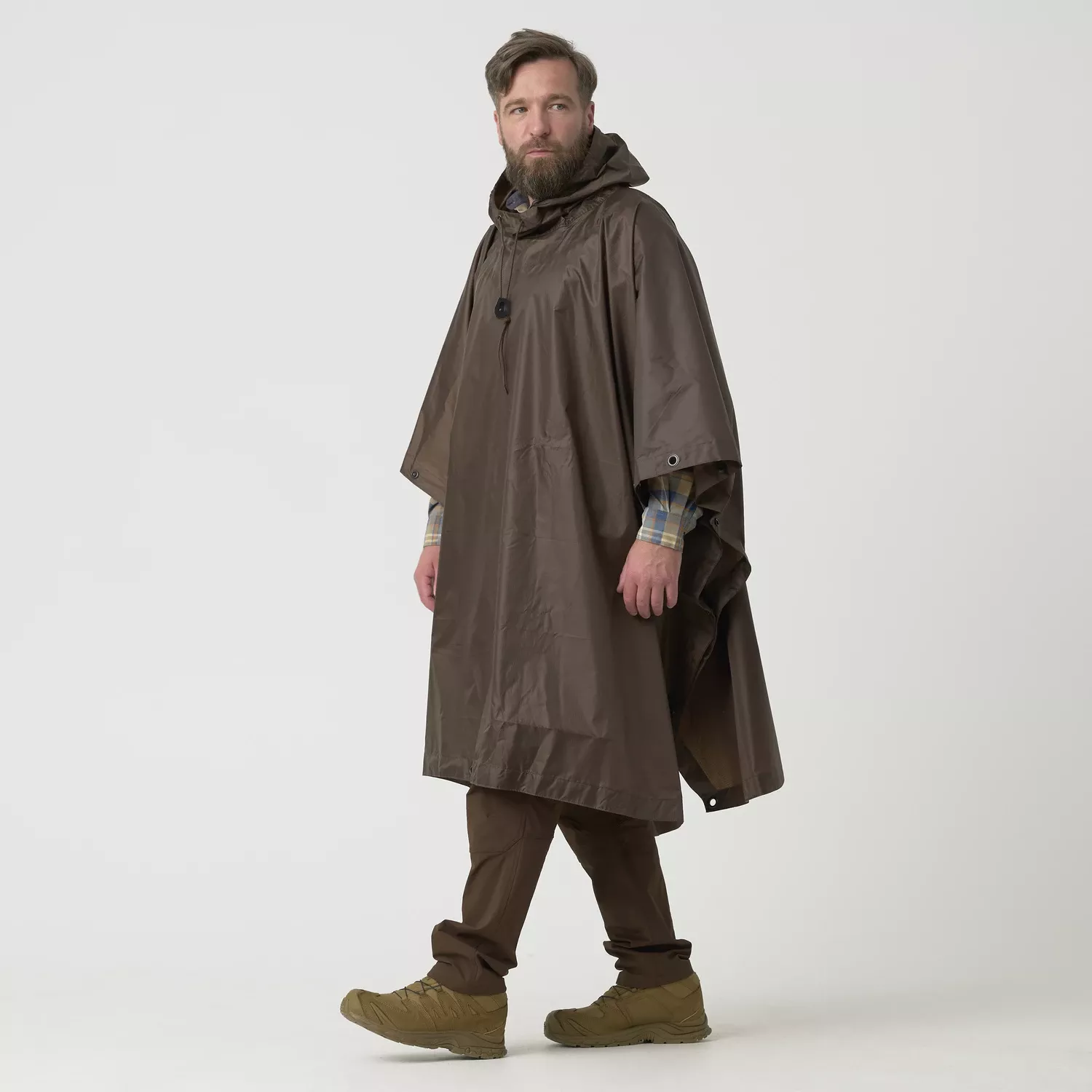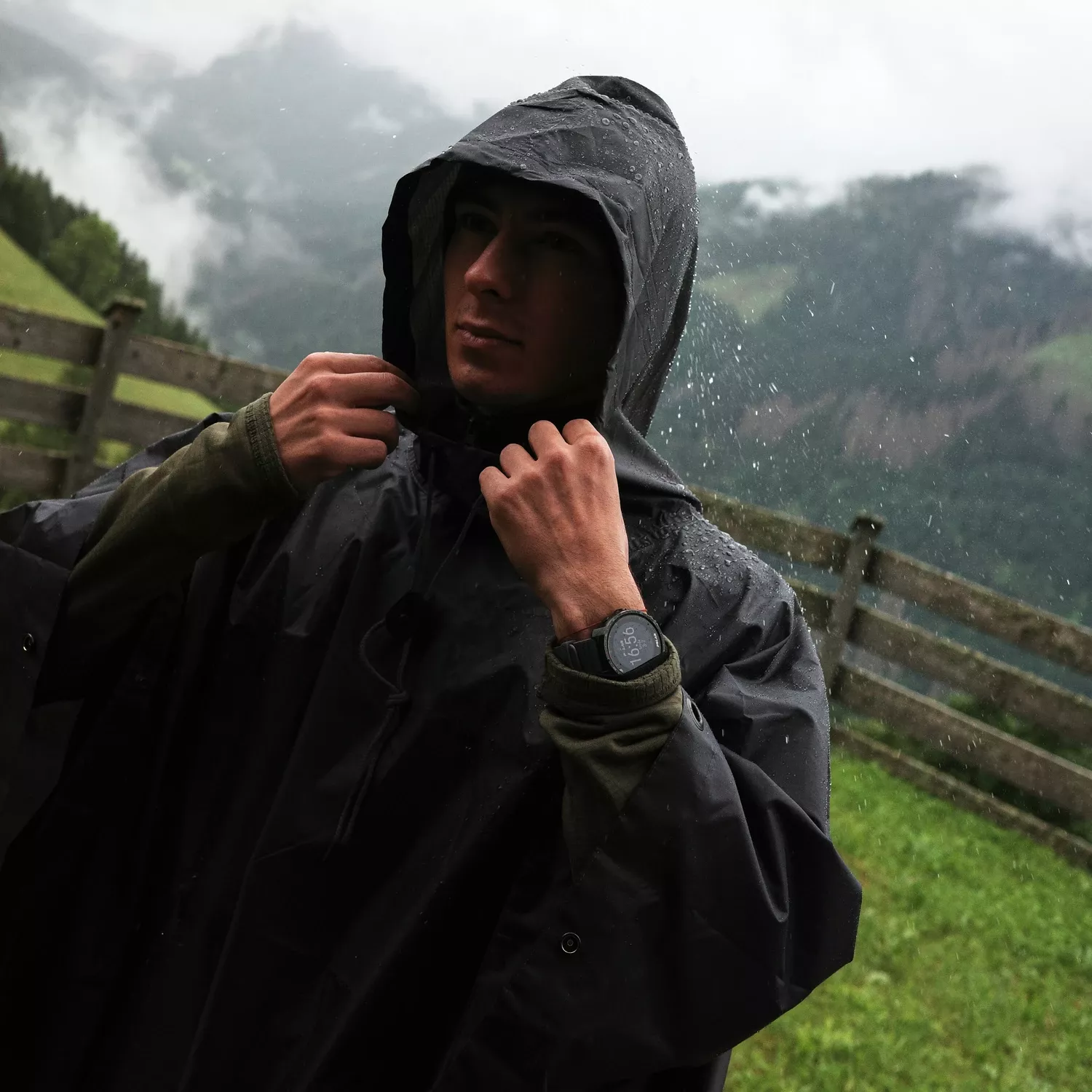 В полевых условиях погода не спрашивает разрешения. Именно поэтому мы разработали пончо модели US – легкое, компактное и прочное защитное изделие, которое вы всегда можете взять с собой. Мы изготовили его из полиэстера RipStop, поэтому он не только защищает от дождя, но и выдерживает зацепы, трение и ежедневное использование в суровых условиях. Это пончо, которое не подведет вас, когда налетит буря, и позволит вам продолжать двигаться.