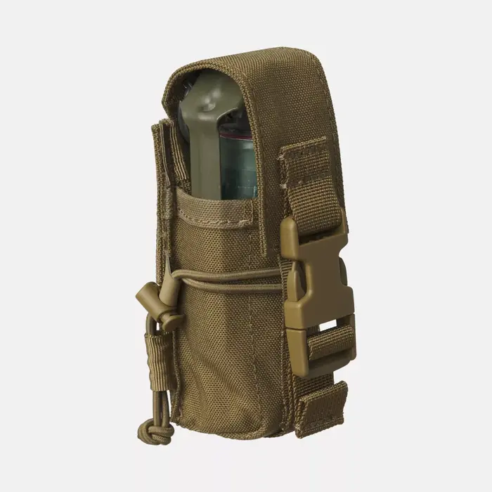 Подсумок для светошумовых гранат представляет собой коробчатую конструкцию, предназначенную для переноски одной светошумовой гранаты или предметов аналогичного размера. В него помещается большинство стандартных светошумовых гранат NICO или P1A6, как с дополнительными утяжелителями, так и без них. Подсумок имеет клапан с пряжкой для быстрого и бесшумного доступа к хранящейся гранате. Высота клапана регулируется с помощью застежек-липучек, что позволяет адаптировать его к различным типам гранат. Клапан также можно отстегнуть для использования в открытом виде, закрепив его эластичным шнурком. Подсумок крепится к снаряжению с помощью модульной системы, совместимой с MOLLE/PALS.