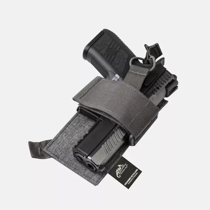 Легкая кобура позволяет безопасно и незаметно носить пистолет в поясной сумке, рюкзаке или сумке. Мобильная вставка для оружия совместима с полноразмерными пистолетами, такими как Glock 17, XDM, CZ P07/09, SIG 226 или P99. Оружие надежно фиксируется во время транспортировки эластичной нескользящей рукояткой, которая позволяет устанавливать его в любом положении, даже вверх ногами. Ключевым преимуществом кобуры военного класса является ее исключительная прочность, гарантированная материалом Cordura, полностью изготовленным из нейлоновых волокон — прочным и устойчивым к истиранию и разрывам. Продуманная конструкция облегчает использование армейской кобуры Insert Inverted Pistol Holder.