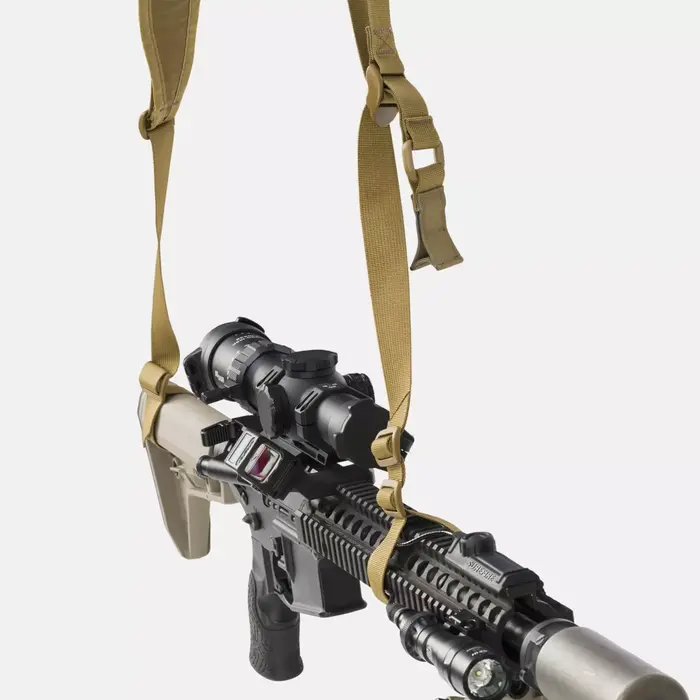 Двухточечный тактический ремень для карабина. Модульный ремень Mirage легко регулируется благодаря нескользящей тканевой застежке. Ремень удобен в использовании, а широкая комфортная накладка с липучкой для индивидуальной подгонки помогает носить более тяжелые карабины. При необходимости вы можете снять накладку, и одну только ленту можно использовать в качестве двухточечного ремня для карабина.