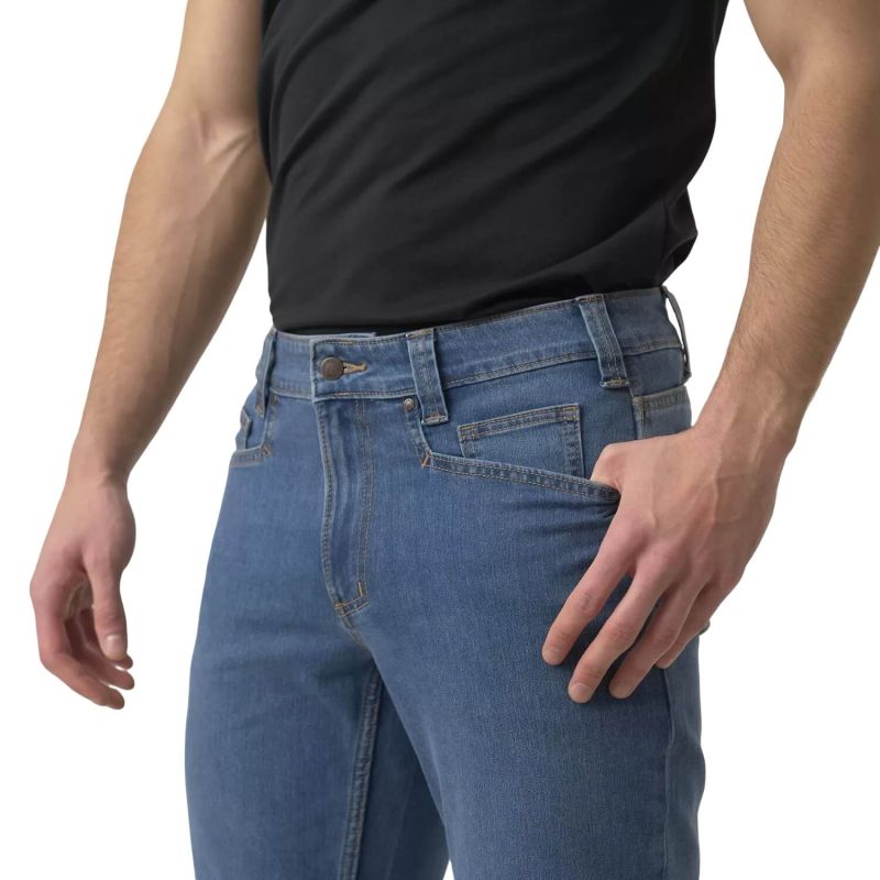 Джинсы Treadstone — это классические брюки, подходящие для повседневного использования, городских приключений и стрелковых тренировок. Они изготовлены из слегка эластичного материала DuraDenim, в котором волокна денима переплетены с волокнами Cordura, что повышает прочность и долговечность брюк, не влияя на их вес.