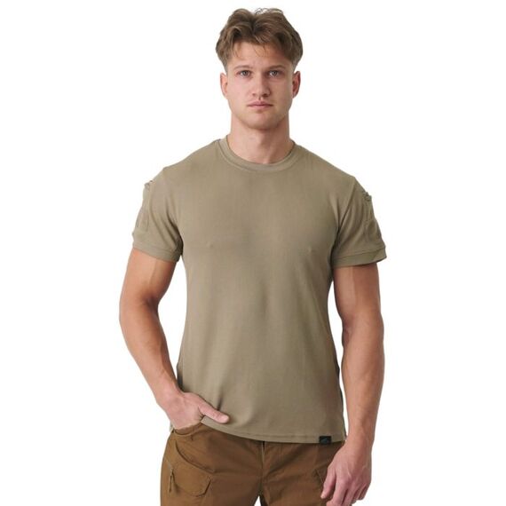 Тактическая футболка — это практичный вариант с короткими рукавами. Футболка изготовлена из быстросохнущей и приятной на ощупь ткани. Материал также отводит влагу — даже при сильном потоотделении. Она хорошо подходит как для занятий на свежем воздухе, так и для тренировок в помещении. Тактическая футболка сочетает в себе универсальный стиль и функциональность. Благодаря двум карманам на плечах и петлям вы можете носить с собой небольшие предметы, например очки. Чтобы персонализировать эту термоактивную футболку, прикрепите нашивку к панели с застёжкой-липучкой.