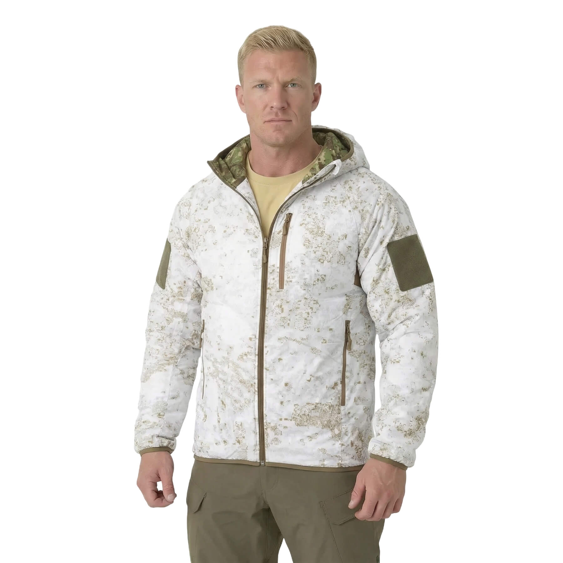 Теперь толстовка Wolfhound Hoodie также может использоваться как камуфляжная куртка в различных условиях . Мы создали три двусторонних варианта , сочетающих в общей сложности шесть камуфляжных расцветок :