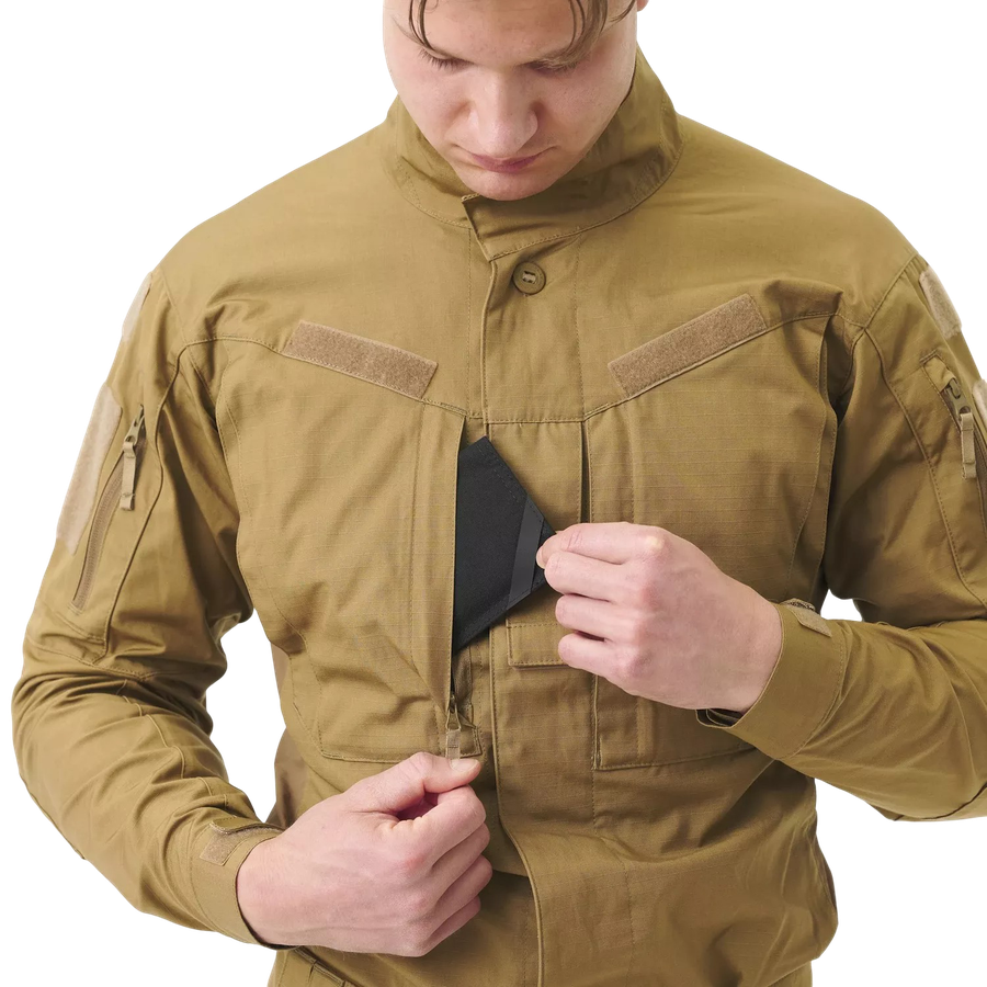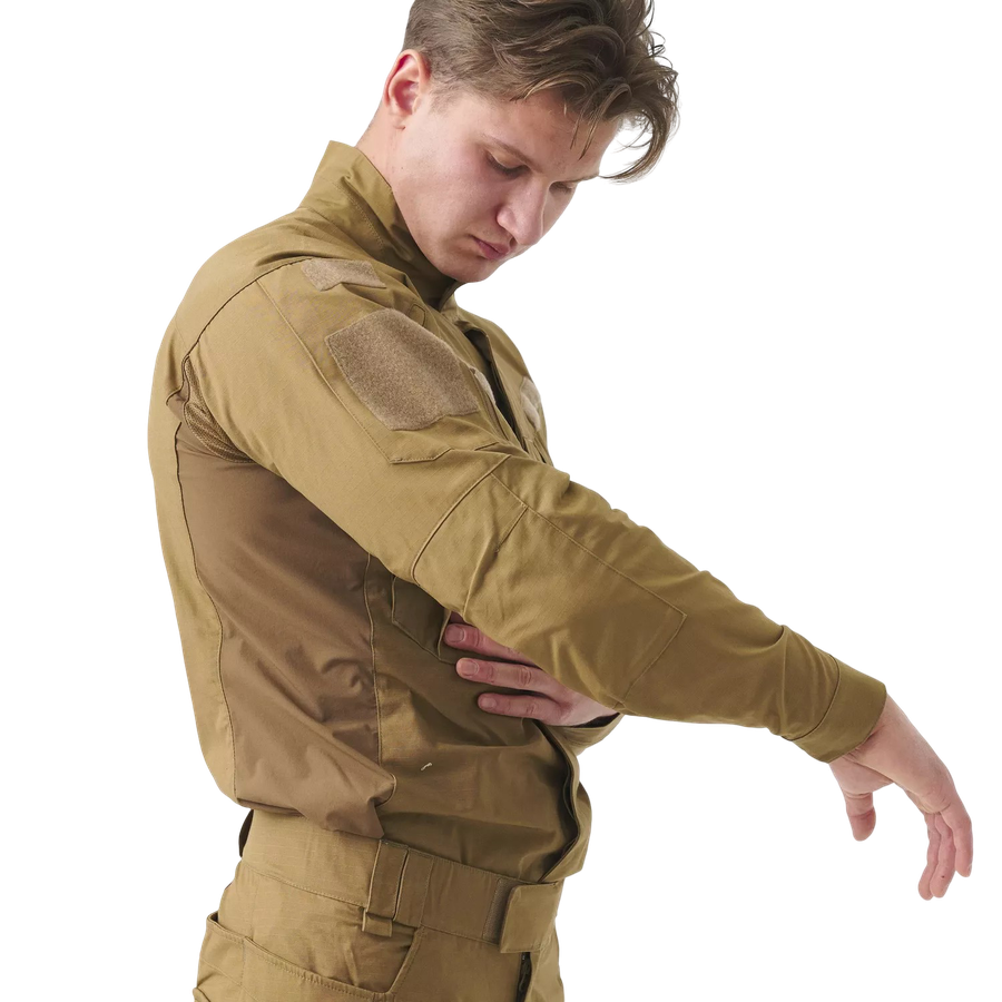 Helikon MBDU Shirt — Рубашка MBDU (Modern Battle Dress Uniform) сочетает прочную ткань NyCo Ripstop (50% нейлон, 50% хлопок) и эластичные вставки Versastretch (93% нейлон, 7% эластан) для свободы движений. Сетчатые вставки и вентиляция помогают поддерживать комфорт, а карманы для защитных вставок и усиленные локти повышают функциональность. Регулируемые манжеты и надёжная застёжка делают MBDU Shirt отличным выбором для боя и тренировок.
