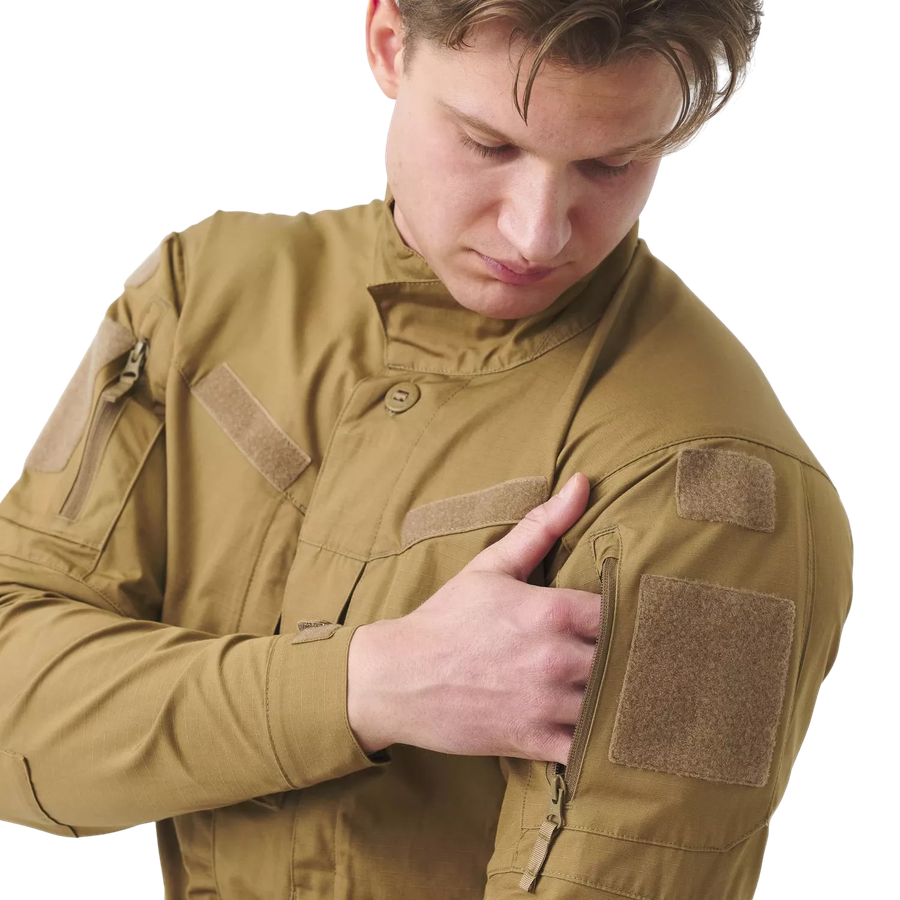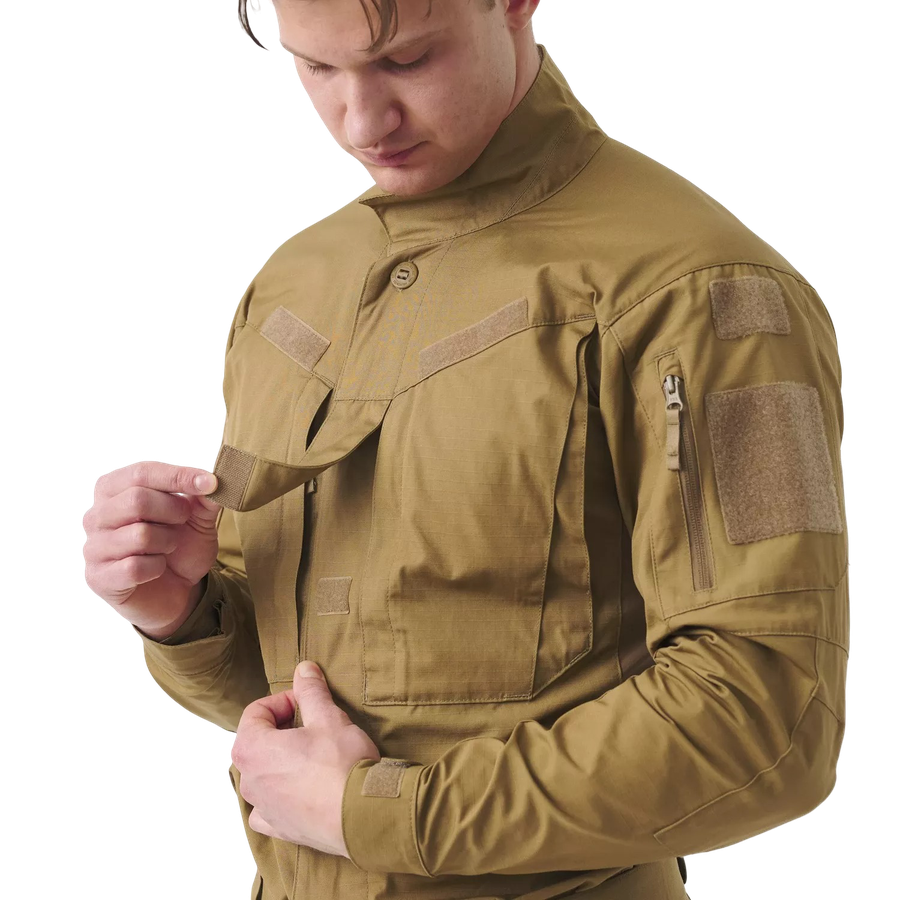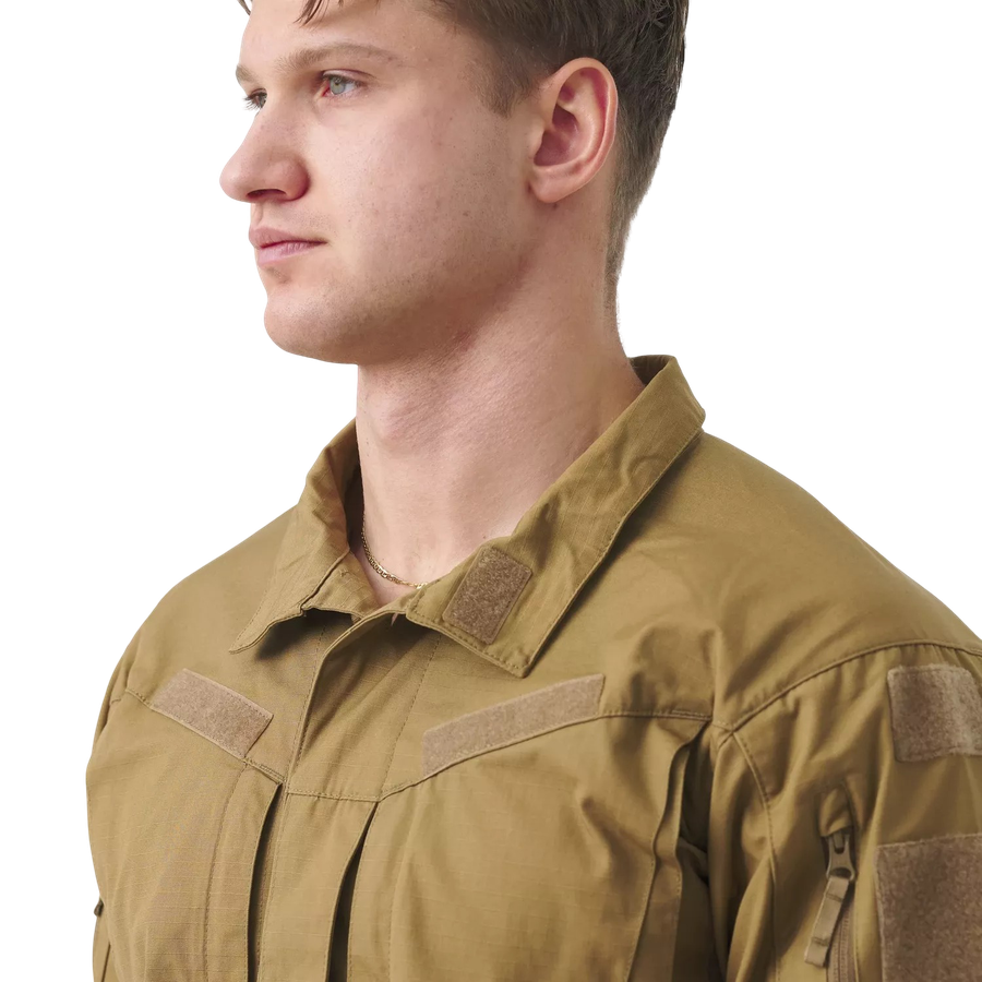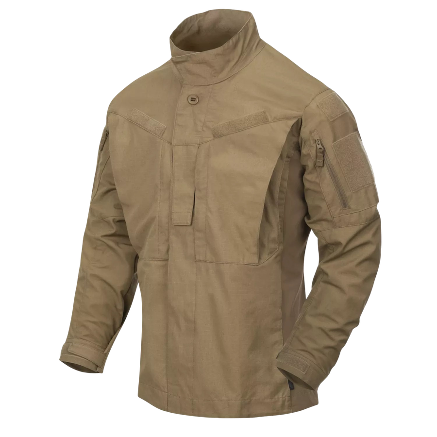 Helikon MBDU Shirt — Рубашка MBDU (Modern Battle Dress Uniform) сочетает прочную ткань NyCo Ripstop (50% нейлон, 50% хлопок) и эластичные вставки Versastretch (93% нейлон, 7% эластан) для свободы движений. Сетчатые вставки и вентиляция помогают поддерживать комфорт, а карманы для защитных вставок и усиленные локти повышают функциональность. Регулируемые манжеты и надёжная застёжка делают MBDU Shirt отличным выбором для боя и тренировок.