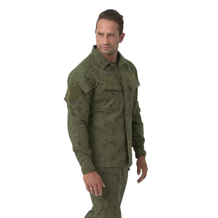 Рубашка Raid — это классика в новом исполнении. Она полностью изготовлена из поликоттона стрейч рипстоп (48 % хлопка, 50 % полиэстера, 2 % эластана), что делает ее слегка эластичной и обеспечивает большую свободу движений. Эта модель имеет удобную конструкцию реглан. Такой крой редко встречается в униформе, но он был принят на вооружение в армии США. Последняя военная форма США, IHWCU (улучшенная боевая форма для жаркой погоды), также имеет конструкцию реглан.