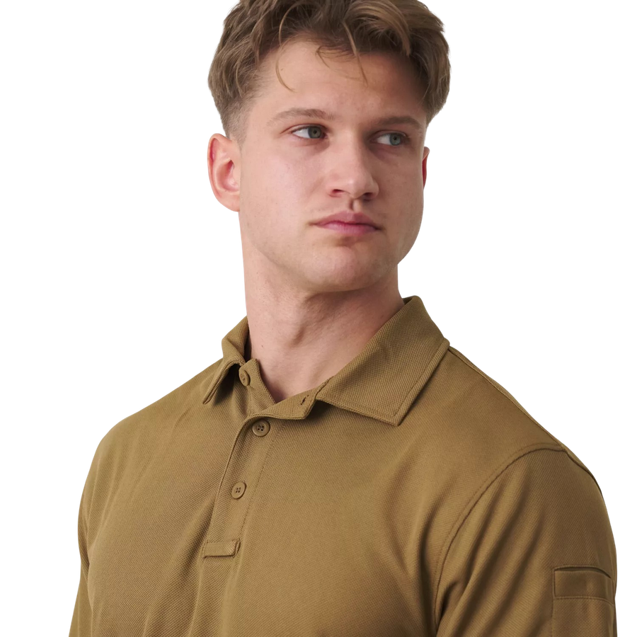 Военная рубашка-поло UTL (Urban Tactical Line) имеет простой классический крой и изготовлена из инновационного трикотажа, состоящего из термоактивного полиэстера с технологией TopCool. Эта система обеспечивает высокую воздухопроницаемость и способствует отведению влаги — военная рубашка-поло остается сухой даже во время интенсивных нагрузок. На пуговицах есть удобная петля для очков, а на левом плече — карман на пуговице. Преимущество тактической рубашки-поло — ее универсальность в любых климатических условиях. Эту одежду ценят не только сотрудники служб в униформе, но и стрелки, и спортсмены.