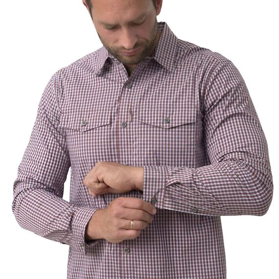 Клетчатая рубашка Concealed Carry отличается несколькими практичными решениями. Два нагрудных кармана и один потайной карман на молнии обеспечивают безопасное хранение ценных вещей. Она также оснащена уникальной системой застёжек, которые выглядят как пуговицы, но на самом деле являются кнопками, позволяющими мгновенно получить доступ к огнестрельному оружию, магазинам, телескопической дубинке и другим полезным аксессуарам, которые можно носить под рубашкой. Дополнительной деталью является нашивка из микрофибры, пришитая изнутри и полезная для чистки очков.