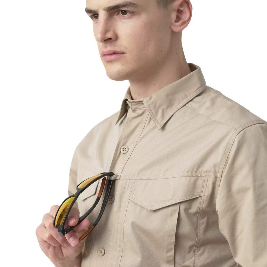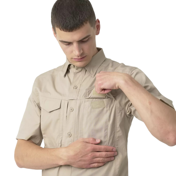 Короткорукавная версия рубашки Defender Mk2 для жаркой погоды. Сшита из прочной смеси полиэстера и хлопка с рипстоп-переплетением (58% хлопок, 40% полиэстер, 2% эластан). Эластичные вставки обеспечивают свободу движений, а петля для очков и два нагрудных кармана повышают функциональность. Вентиляционные каналы помогают сохранять комфорт. Подходит для стрельбы, работы или повседневной носки.