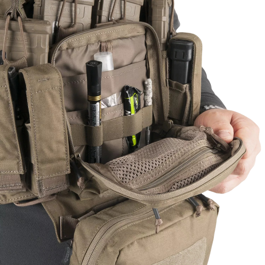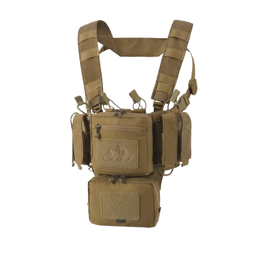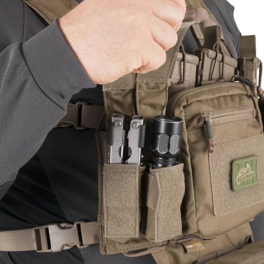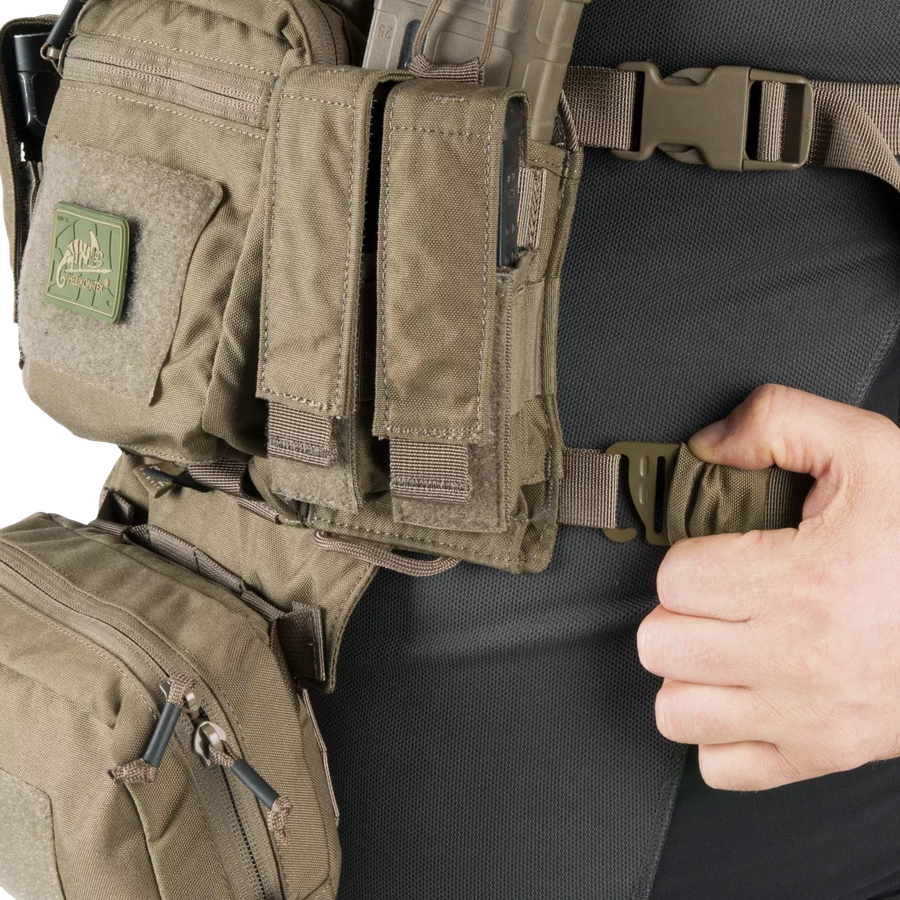 Training Mini Rig Helikon-Tex — универсальная нагрудная платформа для тренировок и динамичной стрельбы. Система имеет центральные подсумки для магазинов AR/AK, эластичные карманы для пистолетных магазинов, два боковых подсумка и внутреннее отделение для документов. Регулируемые ремни, MOLLE/PALS-стропы и карман для аптечки делают Mini Rig удобным и адаптивным.