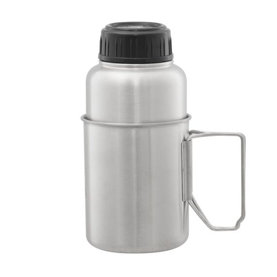 PATHFINDER 32 унции Бутылка для воды из нержавеющей стали с набором гнездовых чашек-это удобный набор для приготовления воды для вашего похода. Благодаря продуманному дизайну бутылка помещается в чашку, и поэтому мы сэкономим много места в тактическом рюкзаке или сумке для кустарного промысла. Раскладной подстаканник позволяет безопасно использовать его рядом с походной плитой, а крышка, добавленная в комплект, ускорит процесс приготовления. Широкий мундштук бутылки позволяет набирать в нее воду из очень неглубоких потоков, а силиконовое уплотнение предотвращает ее проливание во время транспортировки.